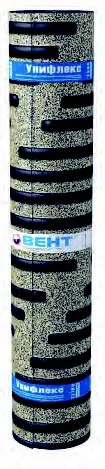 Uniflex VENT is a waterproofing sheet produced by placing a polymer-bitumen binder on a strong rot-proof polyester base or fiberglass. The ventilated surface has binder strips of a certain size, the space between which is filled with coarse-grained sand. When it is welded on, this design provides for the ability of a roof to "breathe" thus guaranteeing the absence of air bubbles, which results in a longer service life.