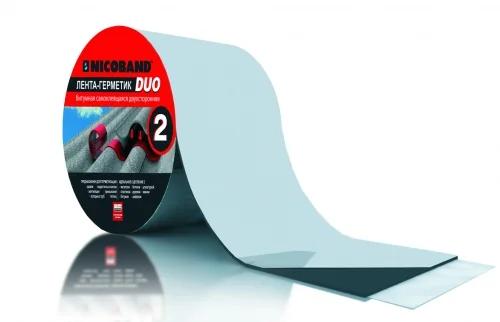 NICOBAND™ DUO is a double-sided self-adhesive bitumen-polymer tape for sealing hidden seams and joints, for temporary fastening or for the simultaneous fixation and sealing of small elements. NICOBAND™ DUO consists of a bitumen-polymer layer of a special composition that provides good adhesion to virtually any surface. On both sides it is protected by polymer films, which are easily removed. The material is easy and convenient to apply. Has excellent adhesion to metal, concrete, plastic, asphalt, wood, glass, etc. NICOBAND DUO material can be used in all climatic zones (as determined in Construction Codes and Regulation (SNiP) 23-01-99*).