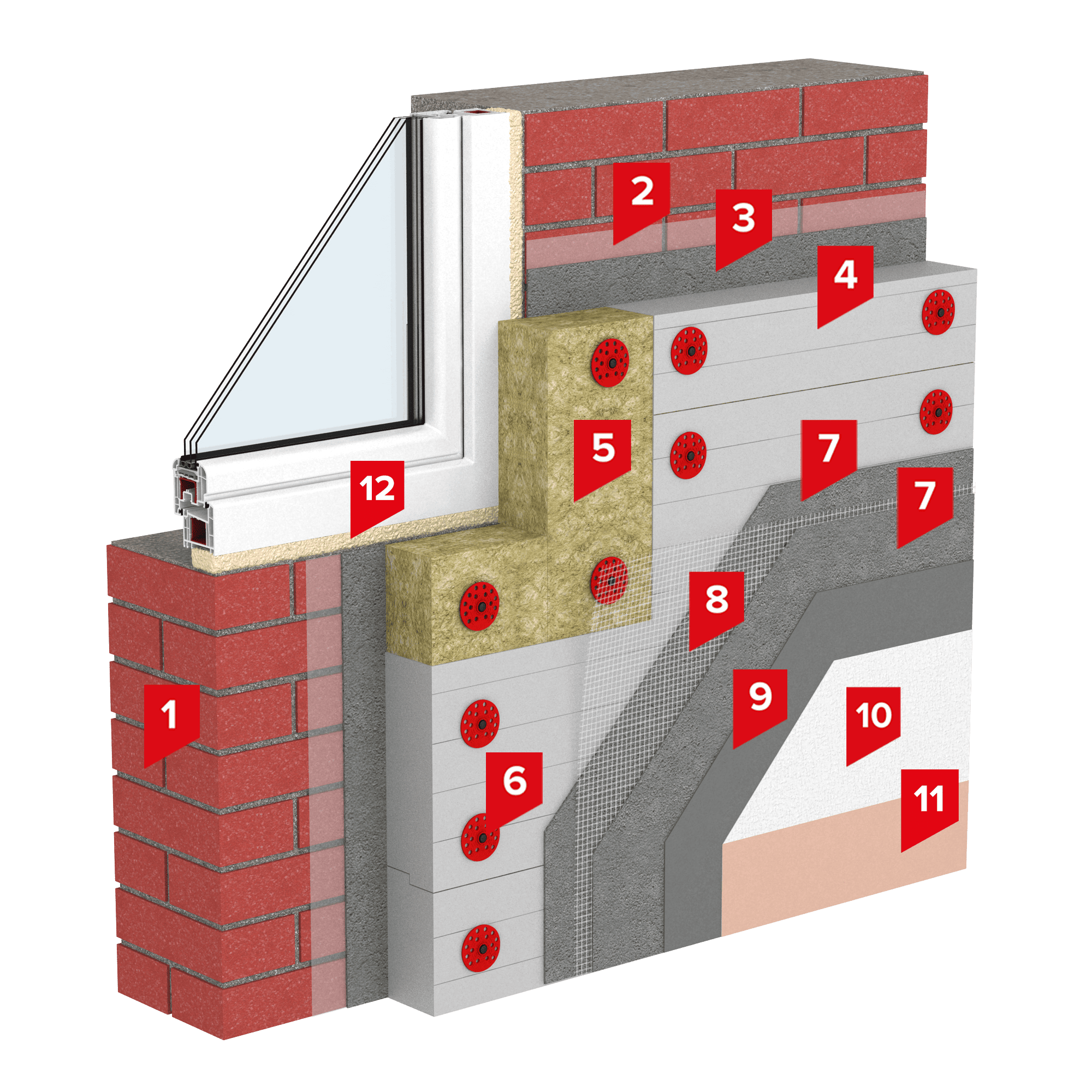 Система штукатурного фасада с теплоизоляцией из экструзионного пенополистирола по каменному основанию.