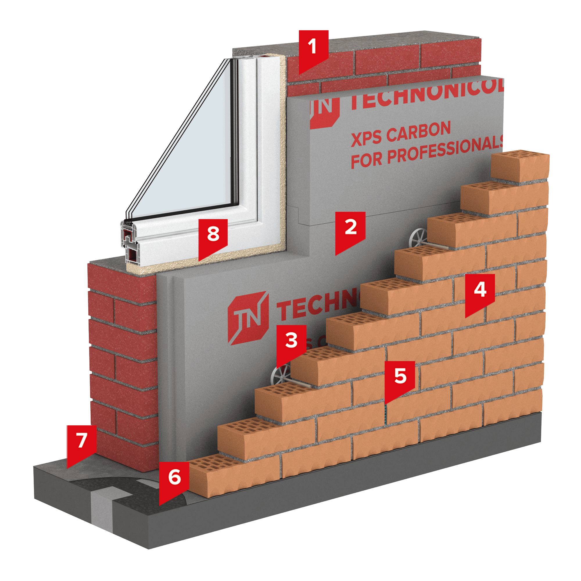 Система слоистой кладки с теплоизоляцией на основе экструзионного пенополистирола и облицовкой декоративным кирпичом