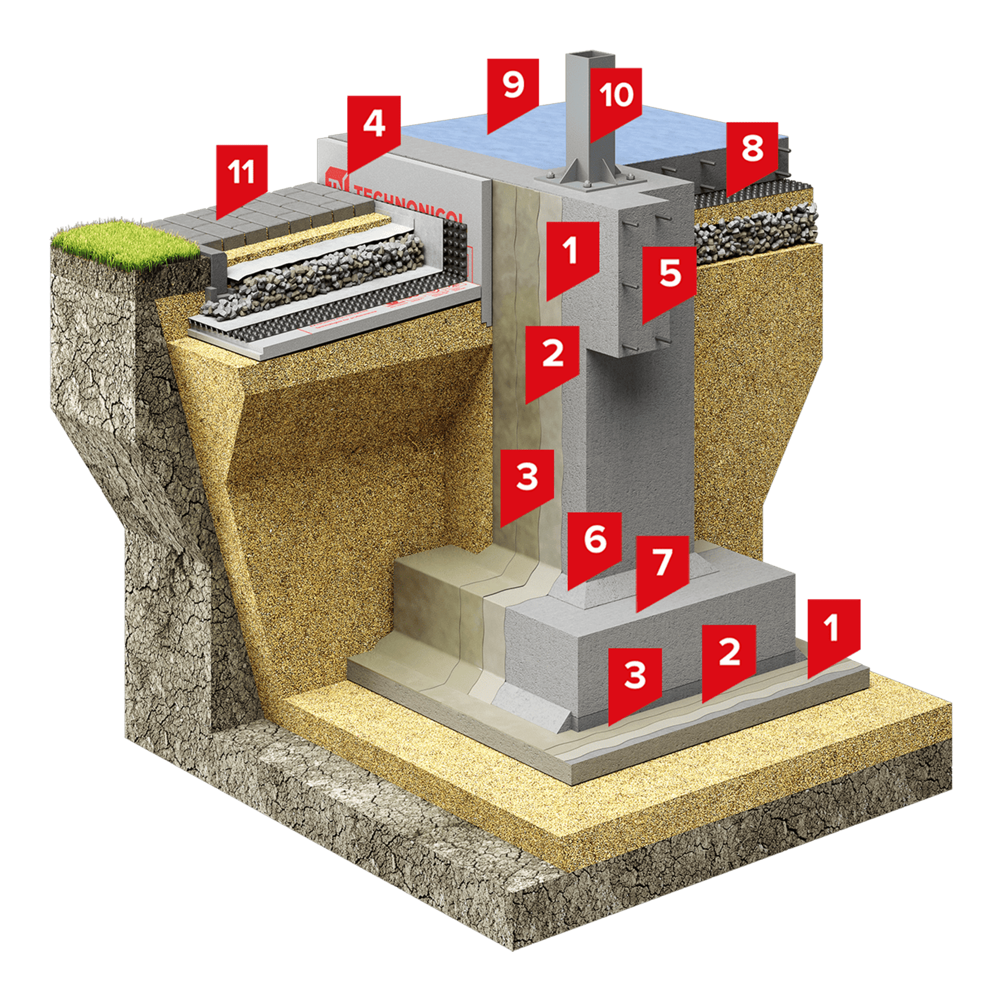 Система изоляции полимерными материалами TAIKOR подземных конструкций, возводимых без  технического этажа или подвального помещения