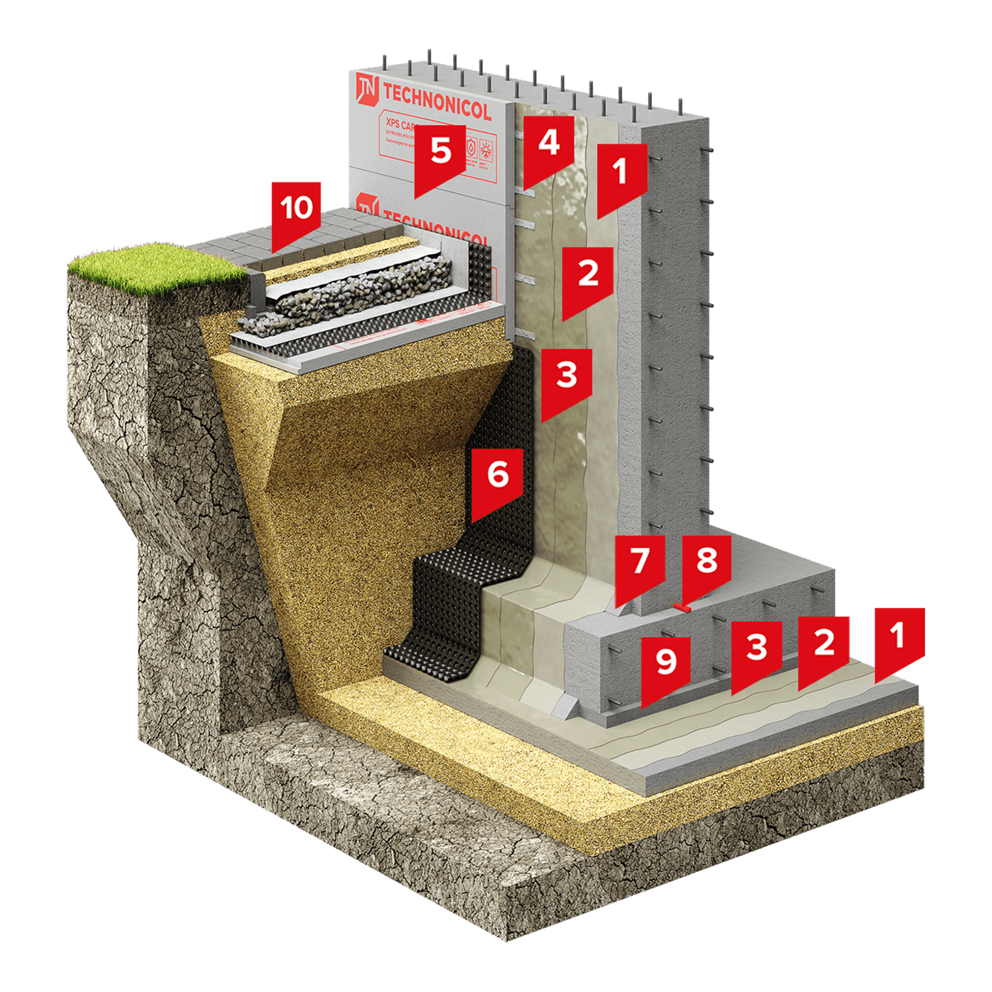 Система применяется для защиты подземных сооружений с эксплуатируемыми, неэксплуатируемыми или жилыми помещениями. Применяется на монолитных и сборных основаниях. При дальнейшем устройстве теплоизоляции из экструзионного пенополистирола, фиксация теплоизоляции к гидроизоляционному слою происходит методом приклеивания теплоизояционных плит с помощью клея-пены ТЕХНОНИКОЛЬ для пенополистирола.