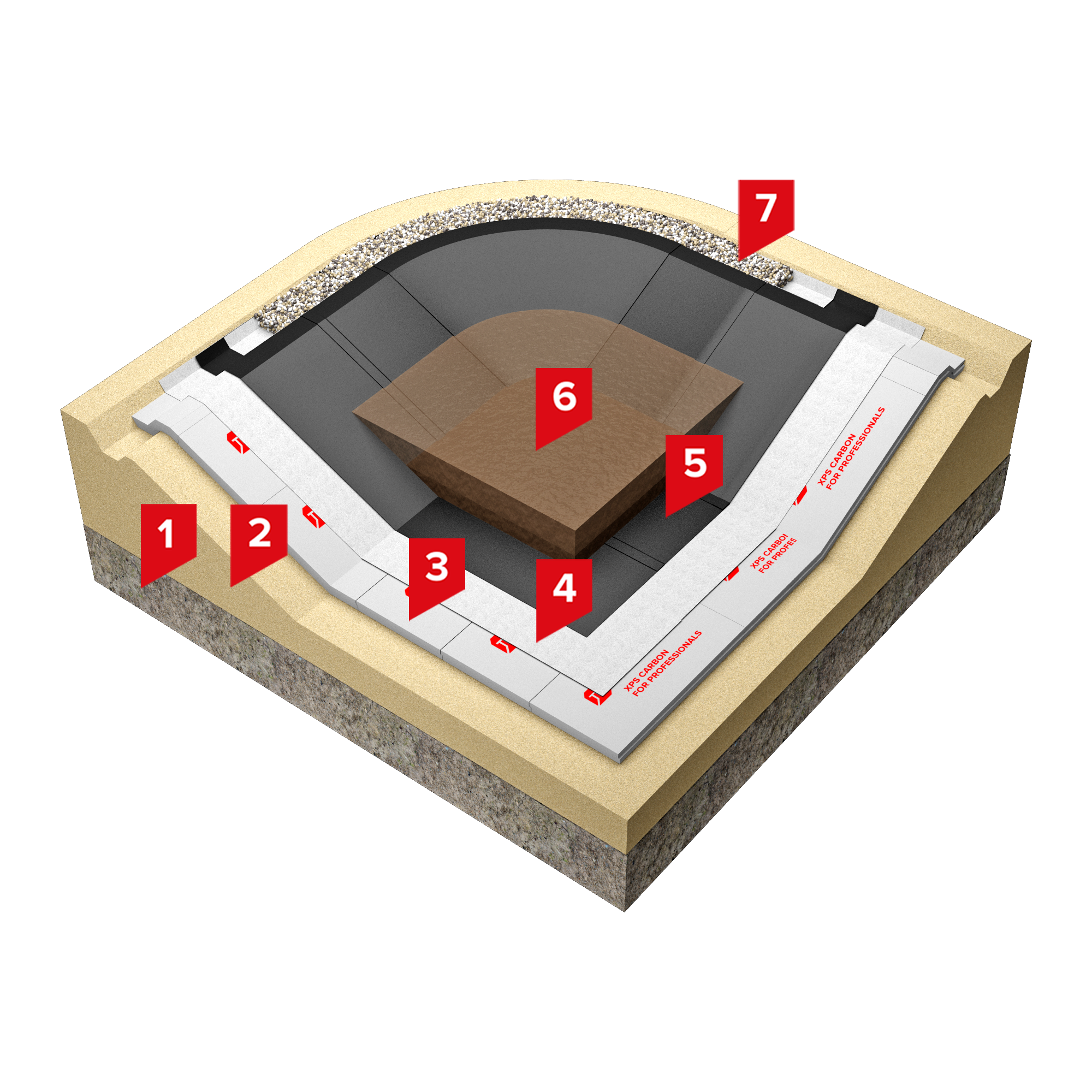 В качестве подстилающего слоя в системе применяется геотекстиль иглопробивной термофиксированный ТЕХНОНИКОЛЬ ПРОФ 500, который монтируется на теплоизолирующем экране из XPS ТЕХНОНИКОЛЬ CARBON PROF.