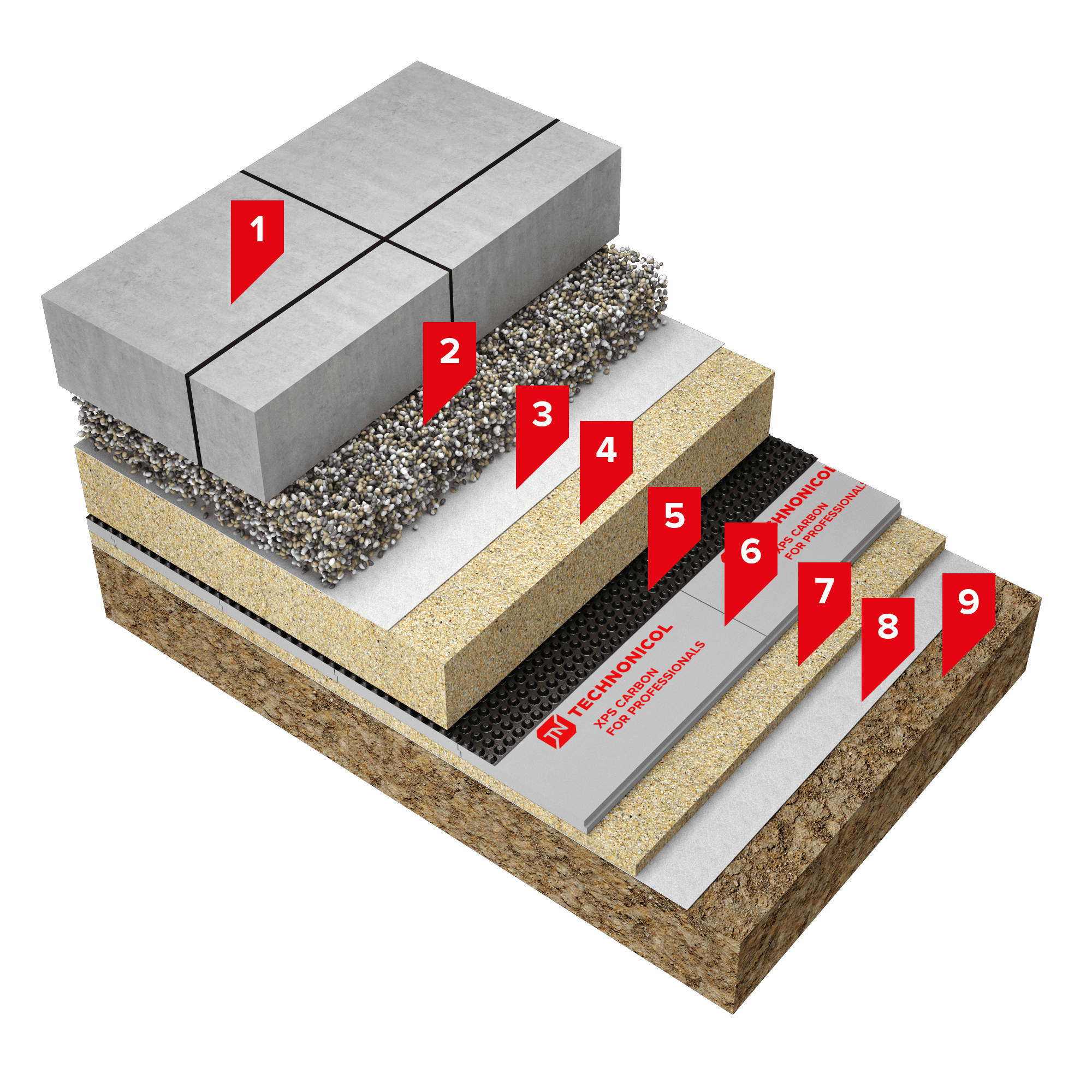 Для защиты от механических повреждений теплоизолирующей прослойки из плит XPS ТЕХНОНИКОЛЬ CARBON SOLID 500 ТИП А следует применять Геосинтетическую мембрану ПЛАНТЕР Д (20х4м).