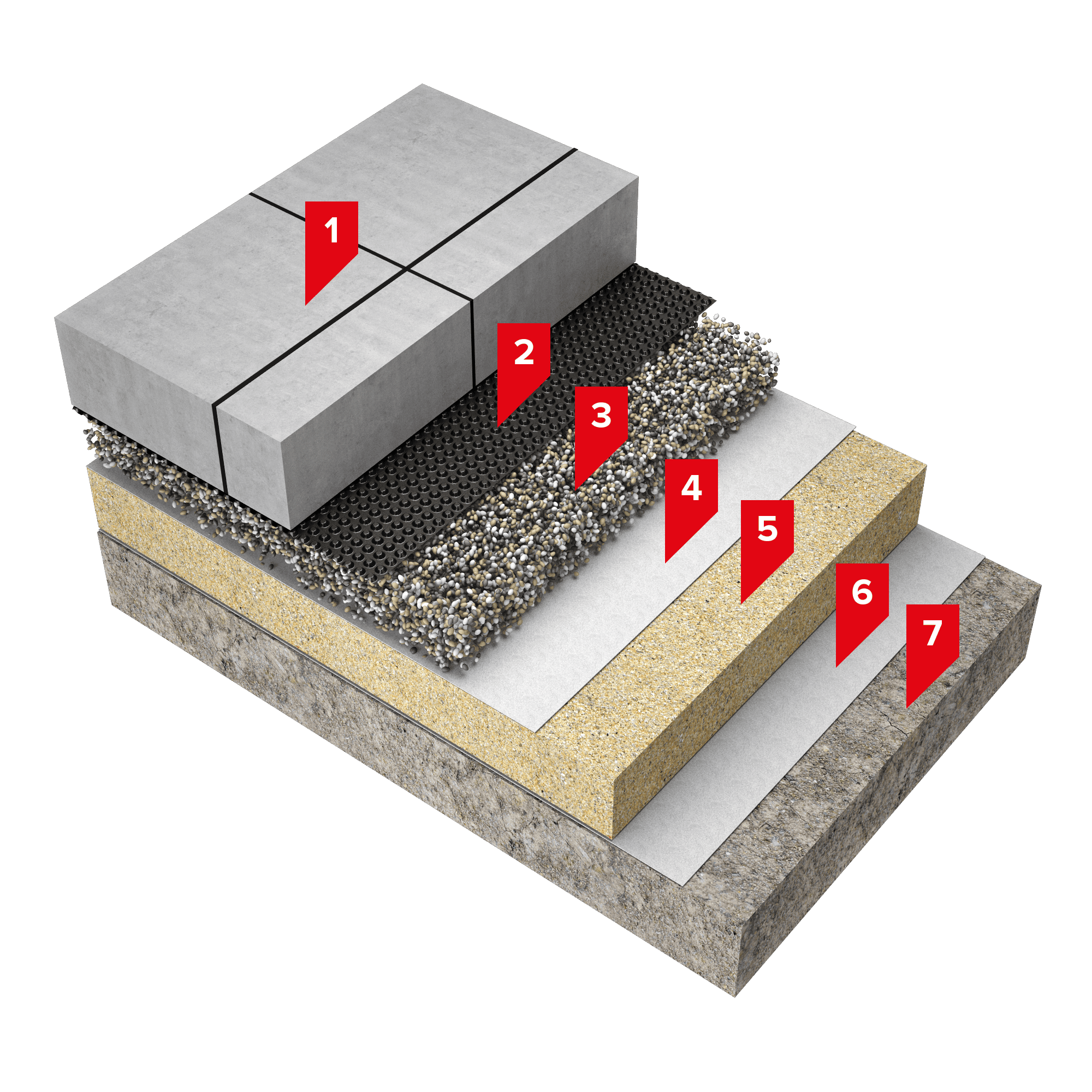 Для правильного процесса гидратации цементобетона в данной конструкции предусмотрена прослойка из Геосинтетической мембраны ПЛАНТЕР® Д, которая в свою очередь обладает более высокими прочностными показателями и высокой стойкостью к повреждениям в сравнении с традиционной аэродромной пленкой, также данная мембрана за счет своего профиля обеспечивает более высокие сдвиговые показатели между слоями.