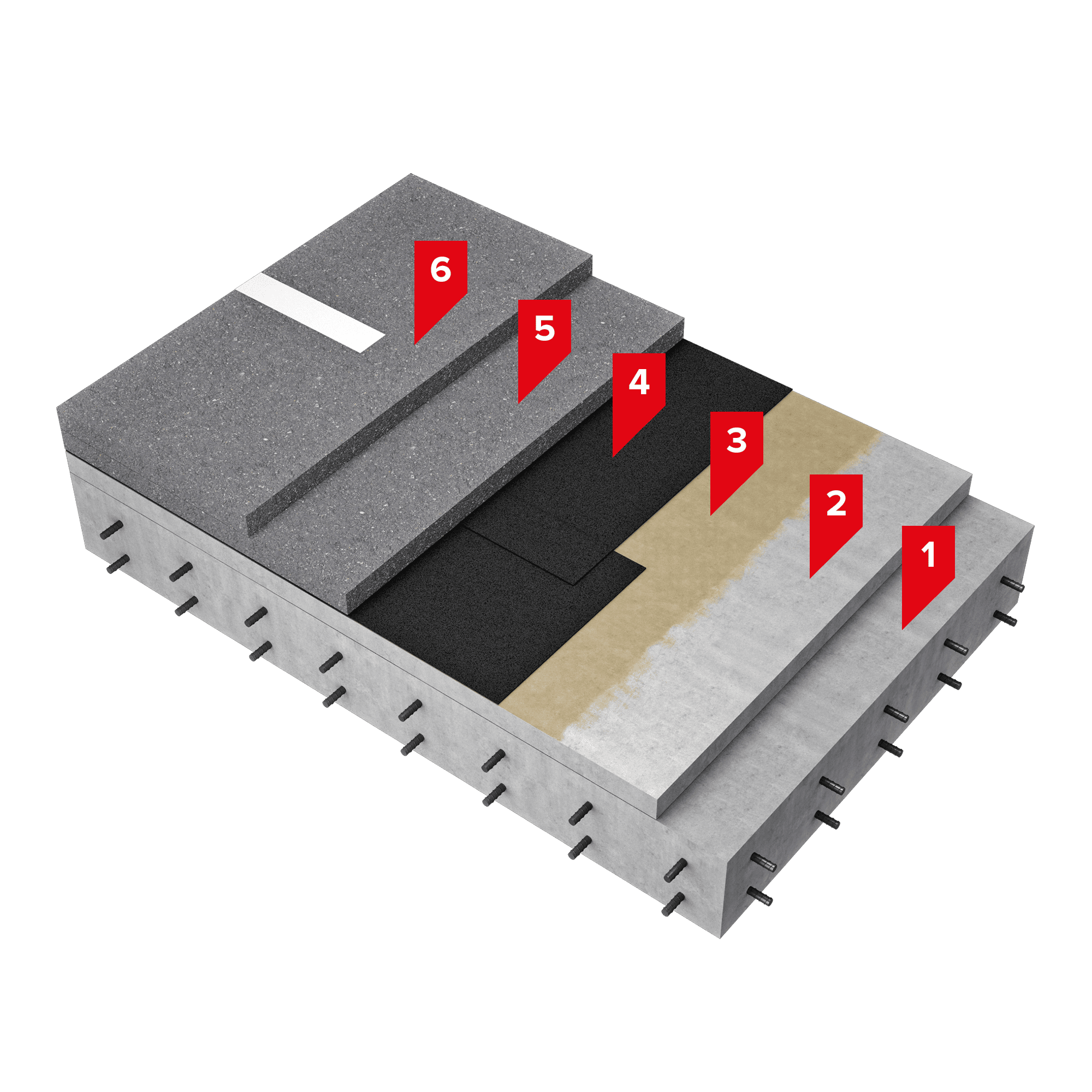 Система представляет собой конструкцию дорожной одежды мостового полотна на железобетонной плите проезжей части с укладкой асфальтобетона на гидроизоляцию. Система состоит из выравнивающего слоя, гидроизоляции, асфальтобетонного покрытия из нескольких слоев с применением в качестве вяжущего ВДПБ ТЕХНОНИКОЛЬ.