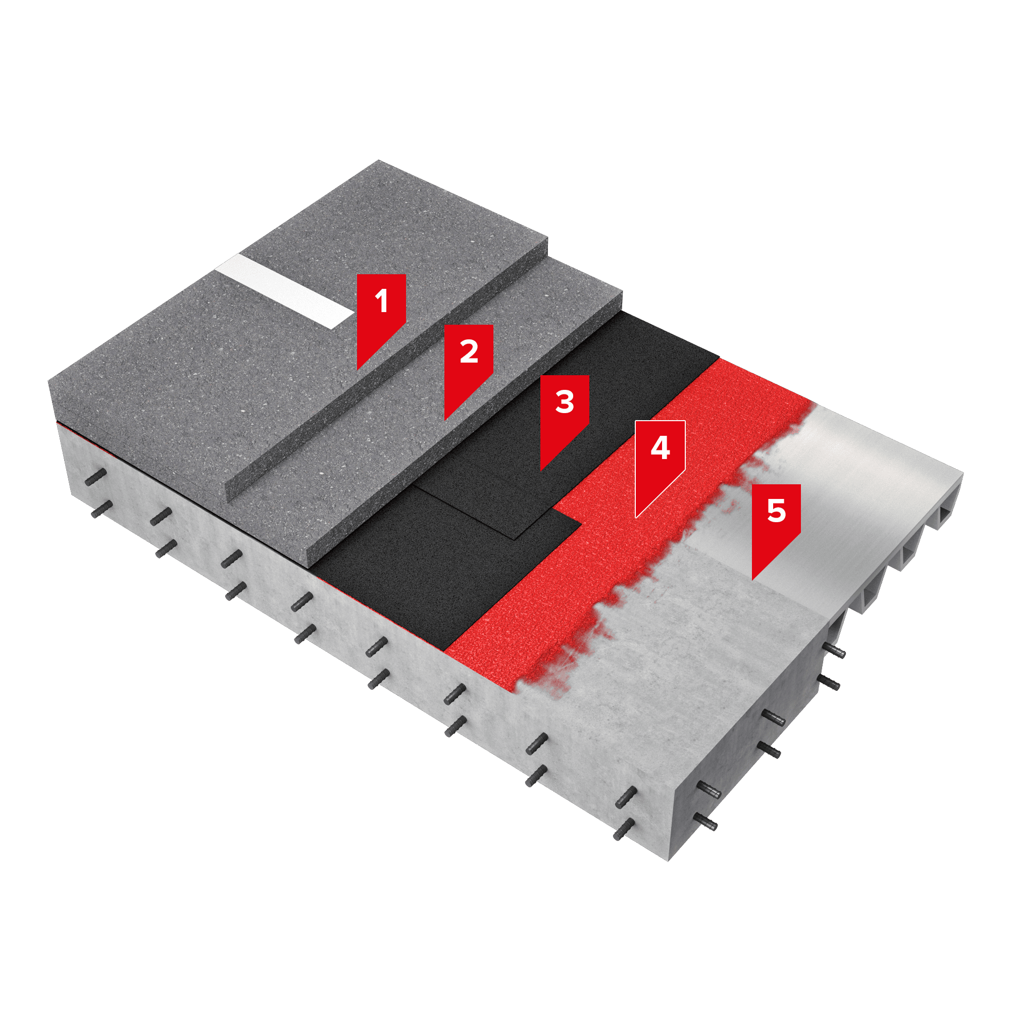 Система представляет собой конструкцию дорожной одежды мостового полотна на железобетонной или стальной ортотропной плите проезжей части с укладкой асфальтобетона непосредственно на гидроизоляцию. Система состоит из основания (металл/бетон), праймера МОСТОФЛЕКС БРМ №210, наплавляемой битумно-полимерной рулонной гидроизоляции ТЕХНОЭЛАСТМОСТ С ГИГАНТ, асфальтобетонного покрытия из нескольких слоев с применением Вяжущего дорожного полимерно-битумного (ВДПБ) ТЕХНОНИКОЛЬ).