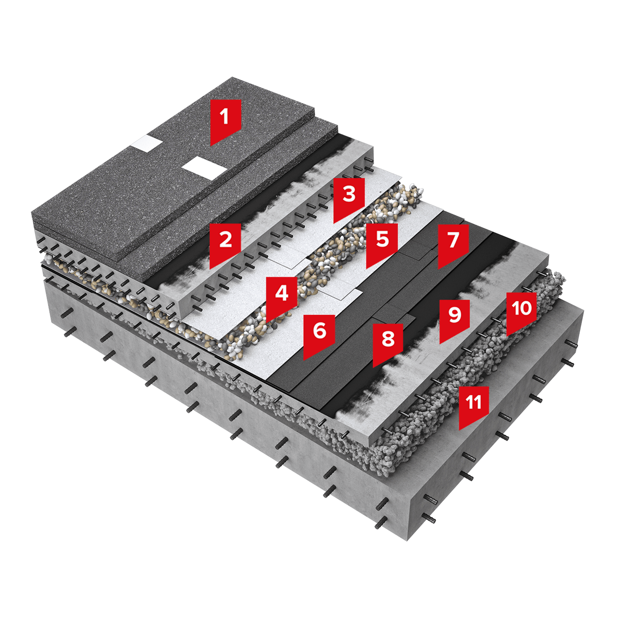 Система применяется на стилобатных частях здания и крышах современных многофункциональных и жилых комплексов, где крыша является эксплуатируемой зоной, подразумевающей движение автотранспорта и устройство парковочных мест.
