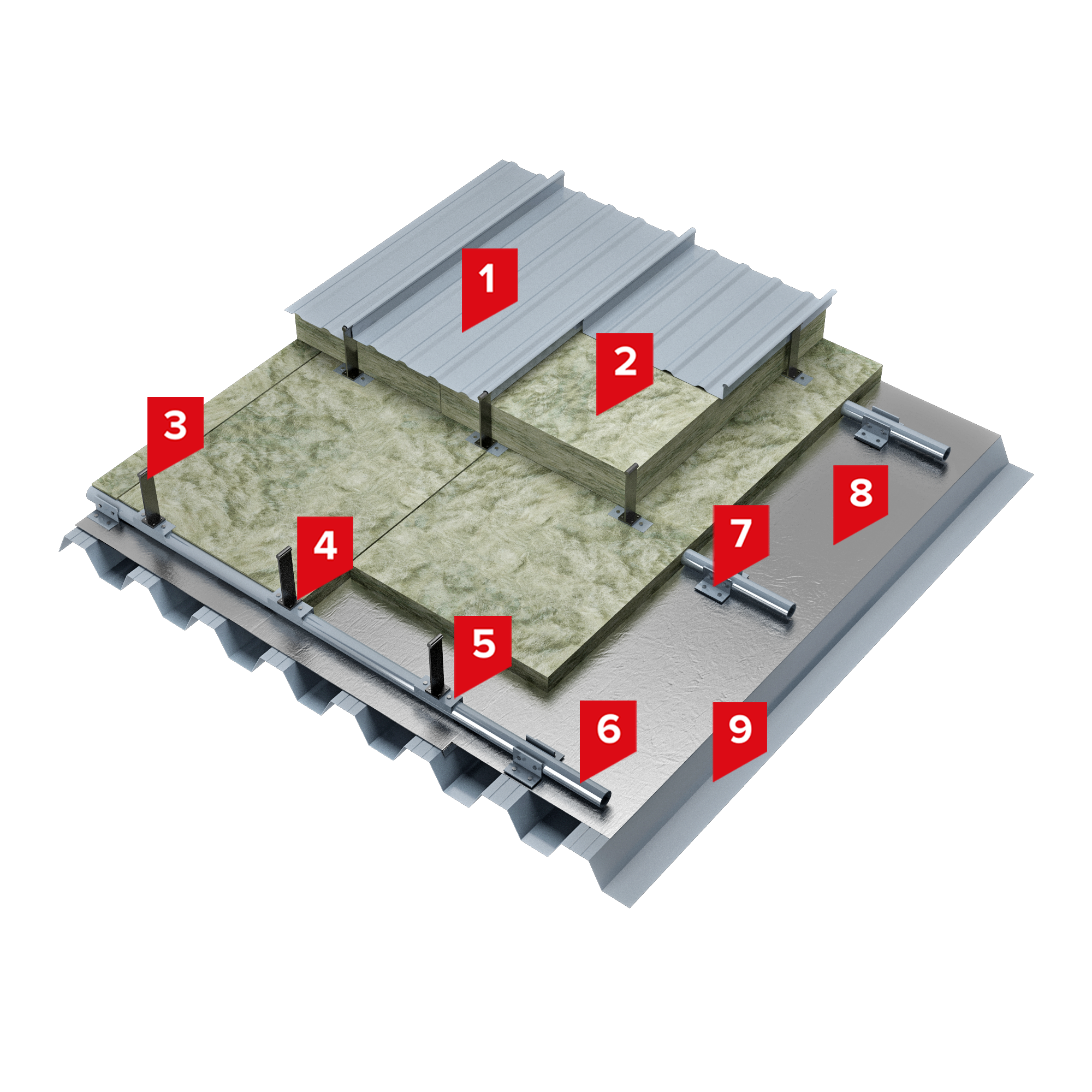Система неэксплуатируемой крыши по стальному профилированному настилу с гидроизоляцией из алюминиевых фальцевых картин LOGICFALZ®.