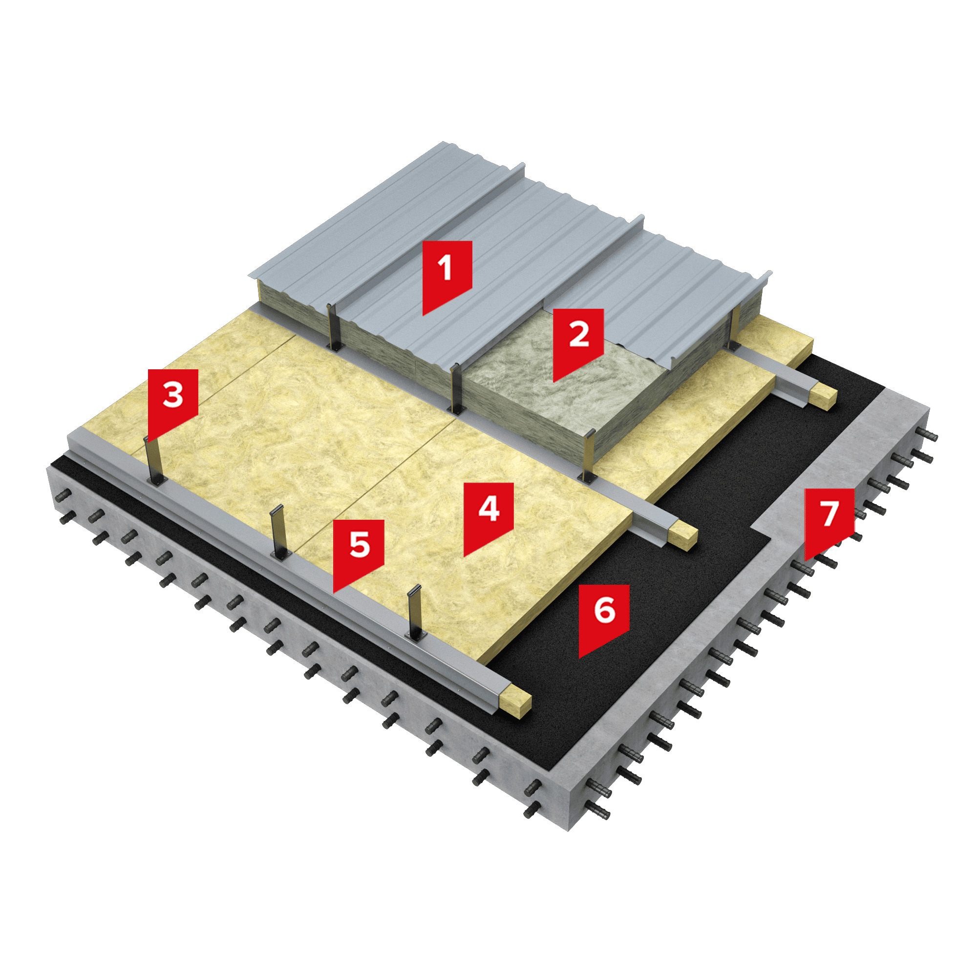 В качестве пароизоляции по бетонному основанию применяется наплавляемый материал Технобарьер. Технобарьер надежно защищает кровельный пирог от насыщения паром, при этом устойчив к возможным механическим повреждениям в условиях монтажа.
