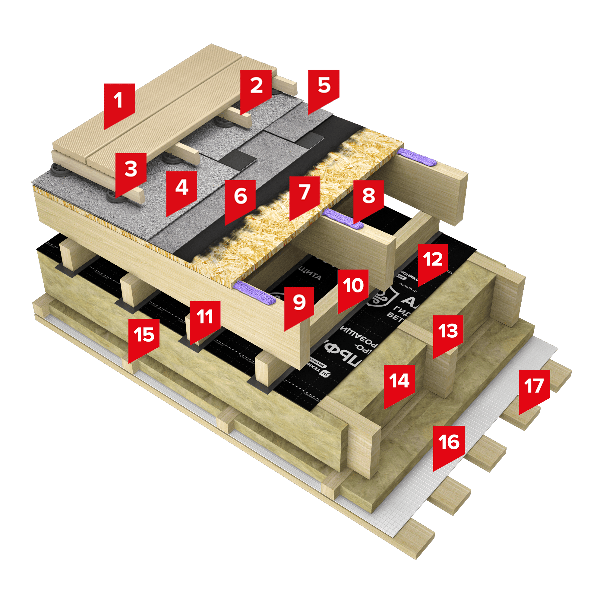 Предназначена для устройства плоских совмещенных кровель в коттеджном и малоэтажном строительстве при устройстве конструкции покрытия по деревянным балкам.