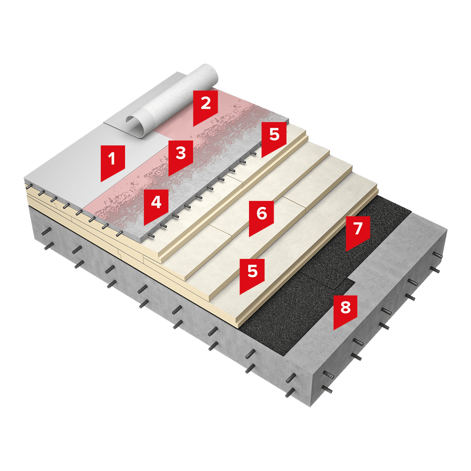 Система неэксплуатируемой крыши по бетонному основанию со стяжкой и клеевым методом крепления полимерной мембраны LOGICROOF