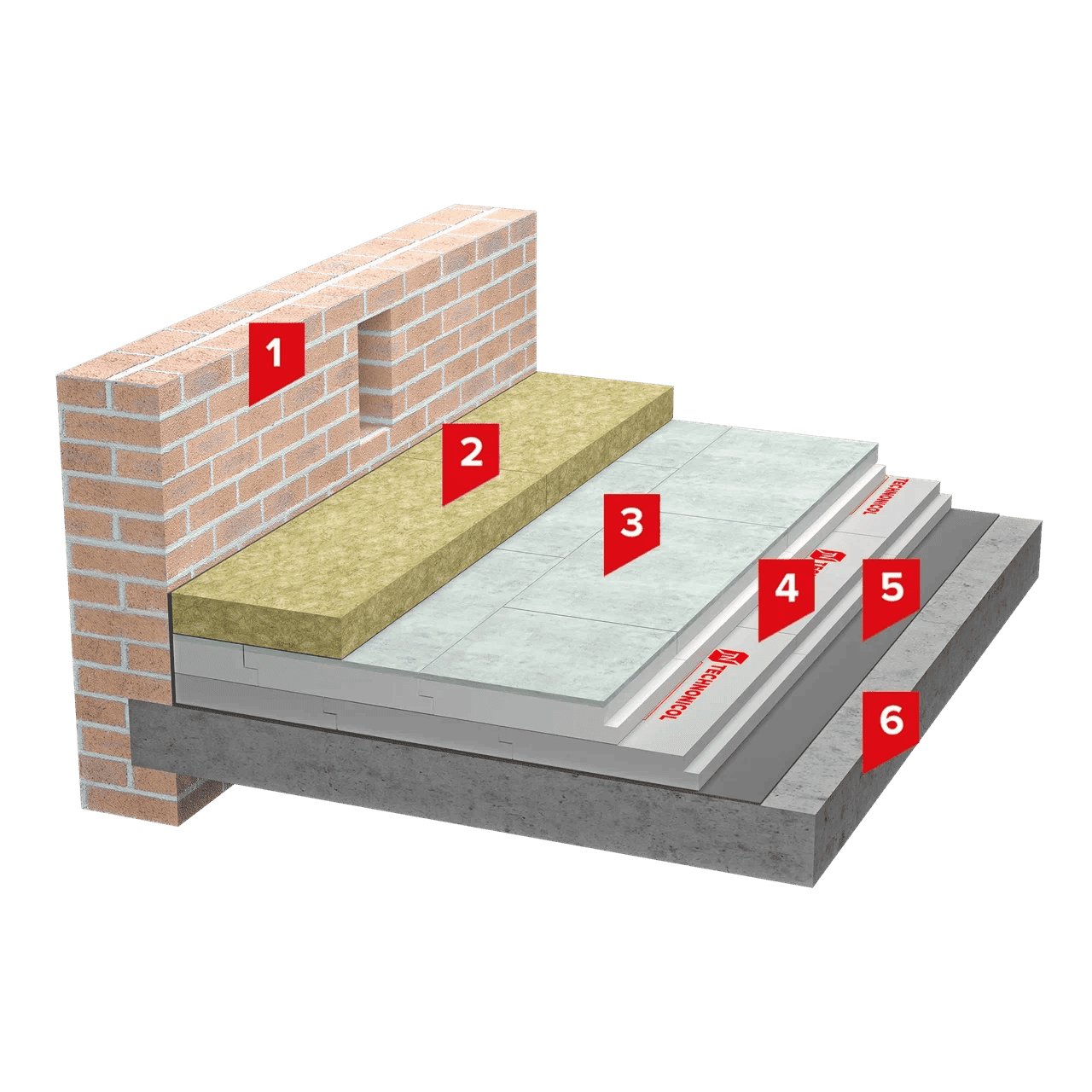 Для нижнего слоя теплоизоляции применяются плиты из экструзионного пенополистирола марки ТЕХНОНИКОЛЬ CARBON PROF, а для верхнего - Сэндвич ТЕХНОНИКОЛЬ Ц-XPS, представляют собой плиты из экструзионного пенополистирола, покрытые защитным слоем из высокопрочного полимерцементного бетона.