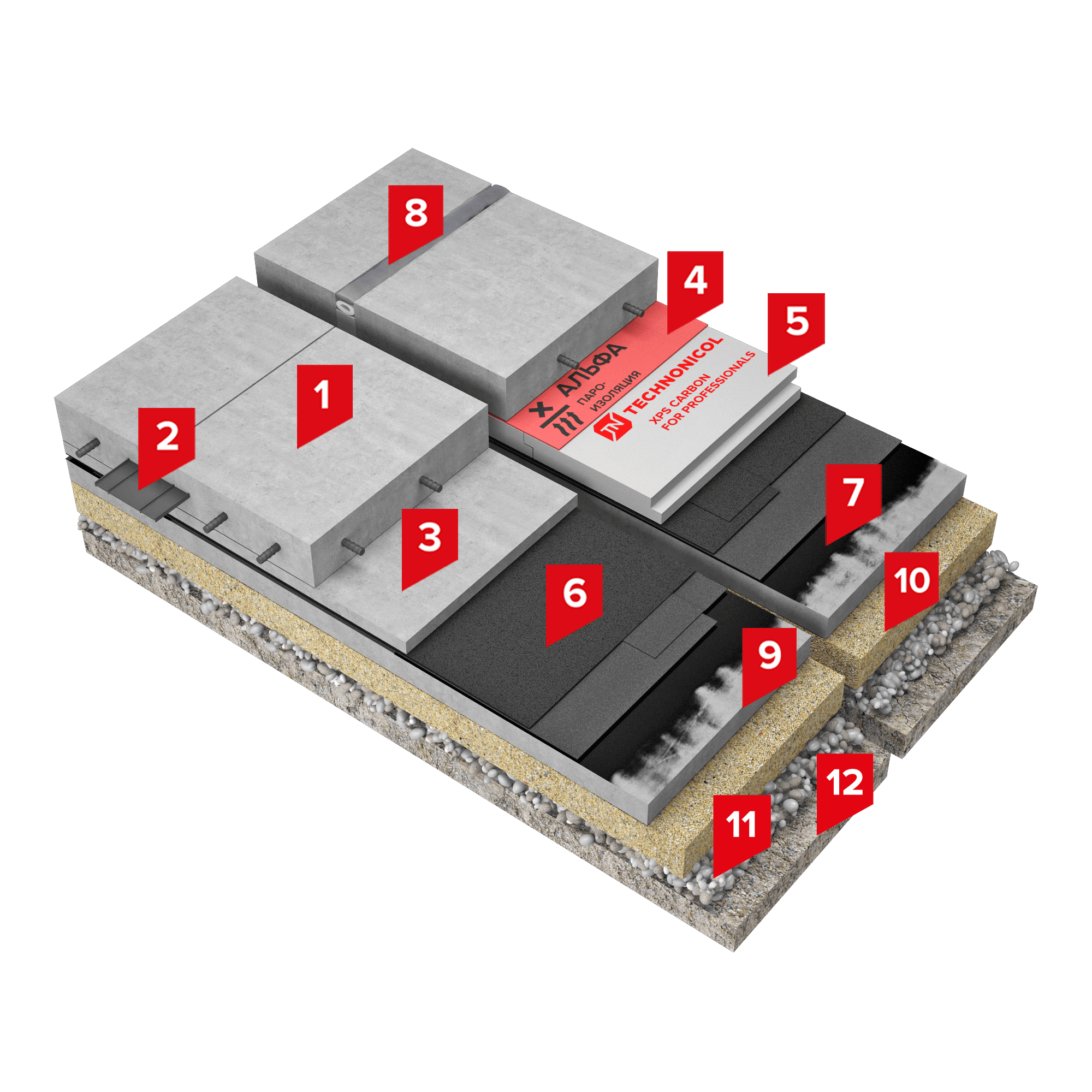 В нагружаемых полах, в полах высотных зданий должен выполняться расчет на прочность подстилающего слоя, в котором может учитываться более прочная марка экструзионного пенополистирола - ТЕХНОНИКОЛЬ CARBON SOLID 500.