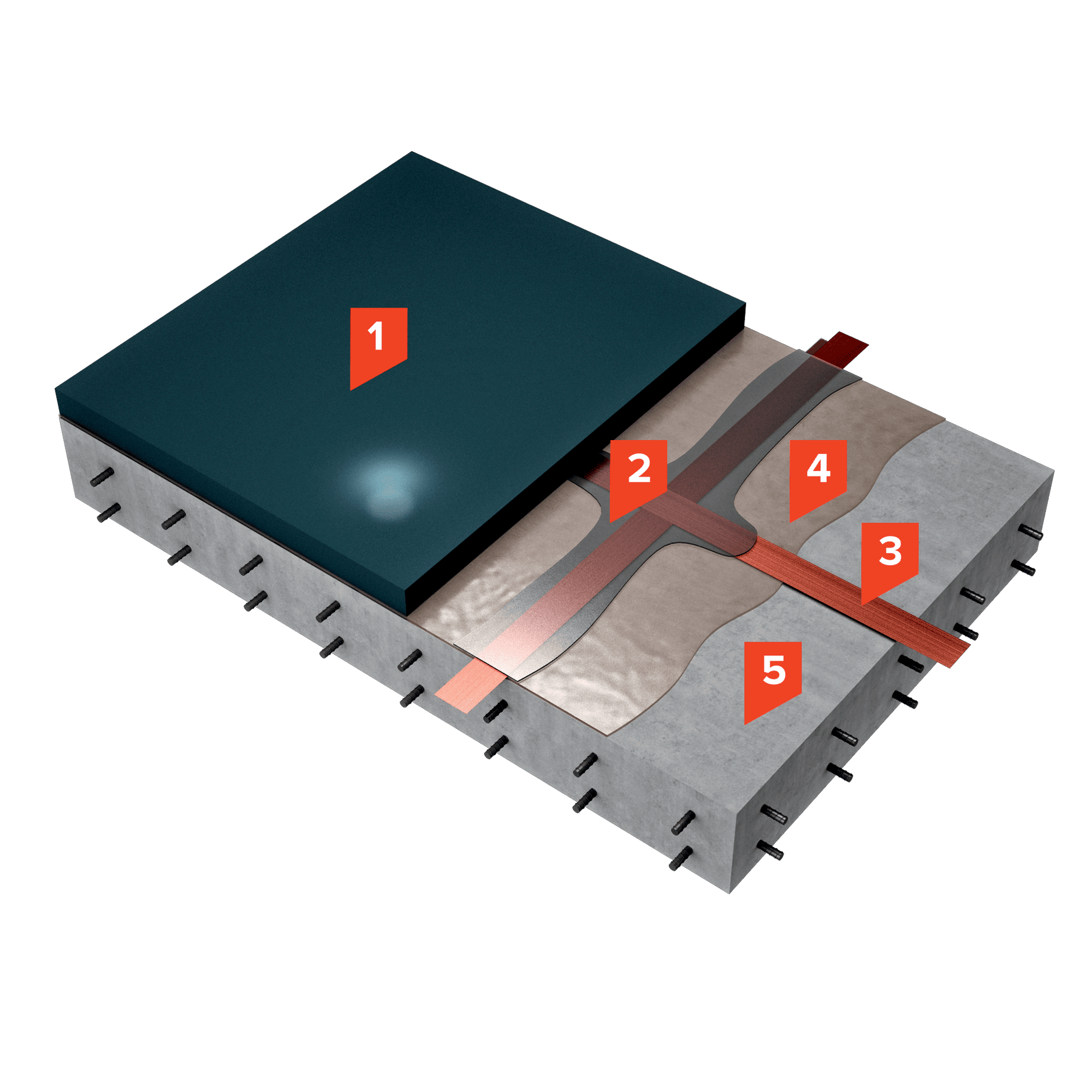После монтажа ленты выполняется нанесение фиксирующего слоя TAIKOR Floor 720 AS. Фиксирующий слой наносится шириной 200 мм валиком поверх медной ленты с захватом бетонного основания. После полимеризации фиксирующего слоя выполняется нанесение основного слоя TAIKOR Floor 720 AS методом налива толщиной 1,5-2,0 мм. Распределение наливного состава по основанию выполняется с помощью ракли или зубчатым шпателем, толщина покрытия регулируется выставленным на ракле зазором или высотой зуба шпателя.