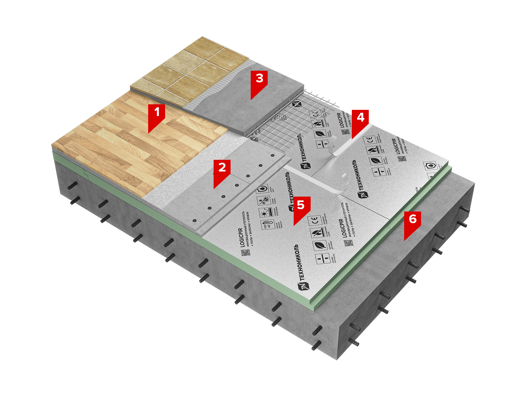 Система ТН-ПОЛ Стандарт PIR широко распространена и применяется для изоляции перекрытий жилых, общественных и административных зданий.