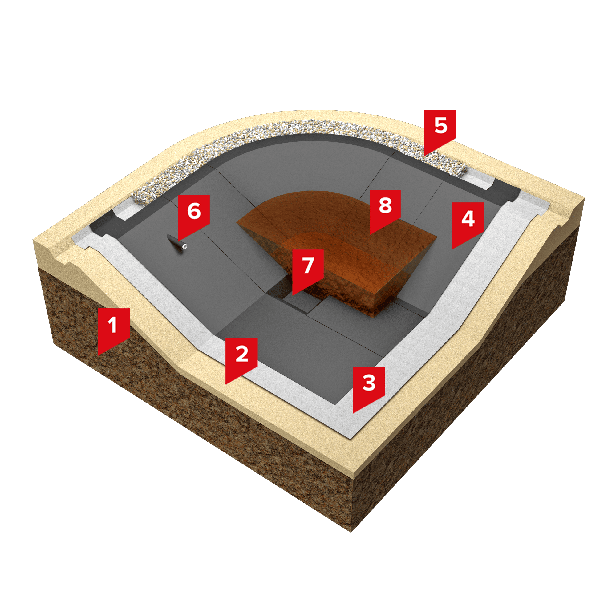 Система применяется для устройства ПФЭ в открытых сельскохозяйственных лагунах, предназначенных для накопления и утилизации отходов животноводства. Использование геомембраны ГЕОПРУФ позволяет исключить проникновение навозосодержащих стоков в толщу грунтового основания.