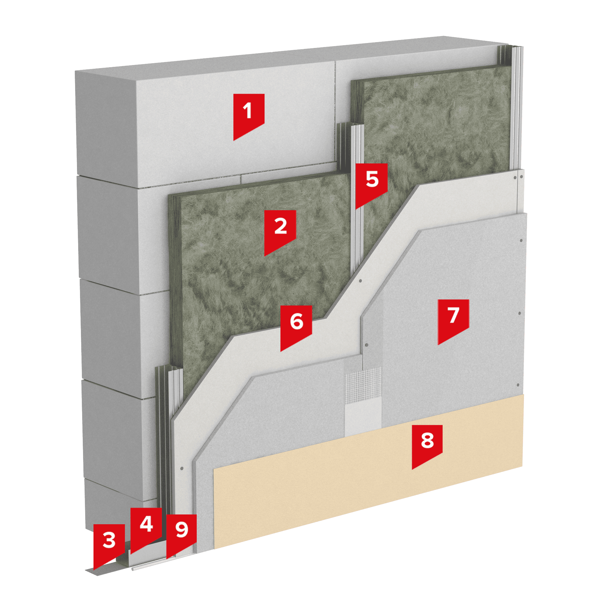 В системе ТН-СТЕНА Акустик Стандарт устанавливается стальной каркас на относе 3-5 мм от стены. Крепление каркаса осуществляется по контуру. Тепло-, звукоизоляционные плиты из каменной ваты или стекловолокна крепятся враспор между стойками металлического каркаса. Обшивка каркаса выполняется с применением ГКЛ, ГСП или ГВЛ листами в один или два слоя. Чистовая отделка может выполняться различными способами.