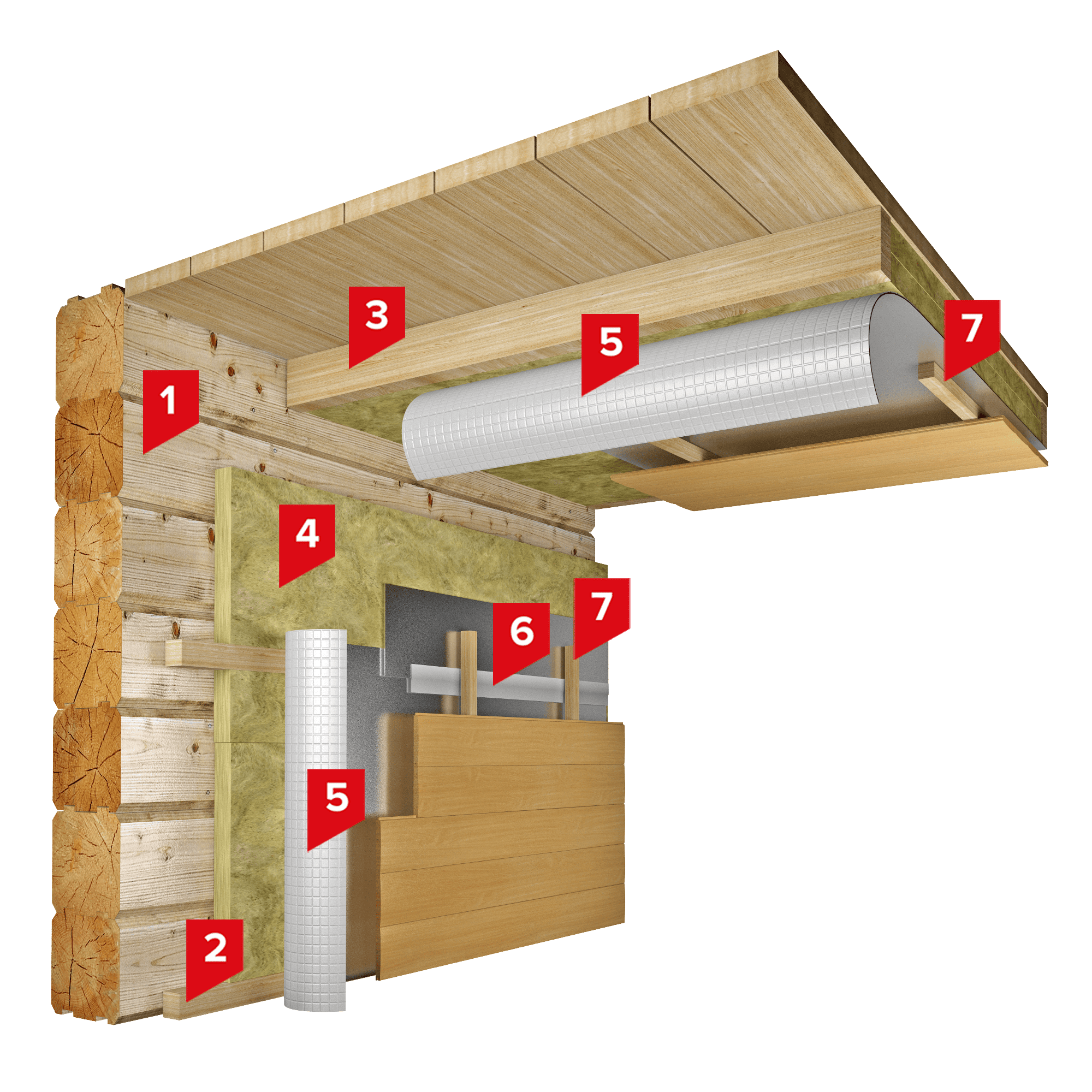 Система теплоизоляции стены и потолка парного помещения бани (парилки) плитами из каменной ваты