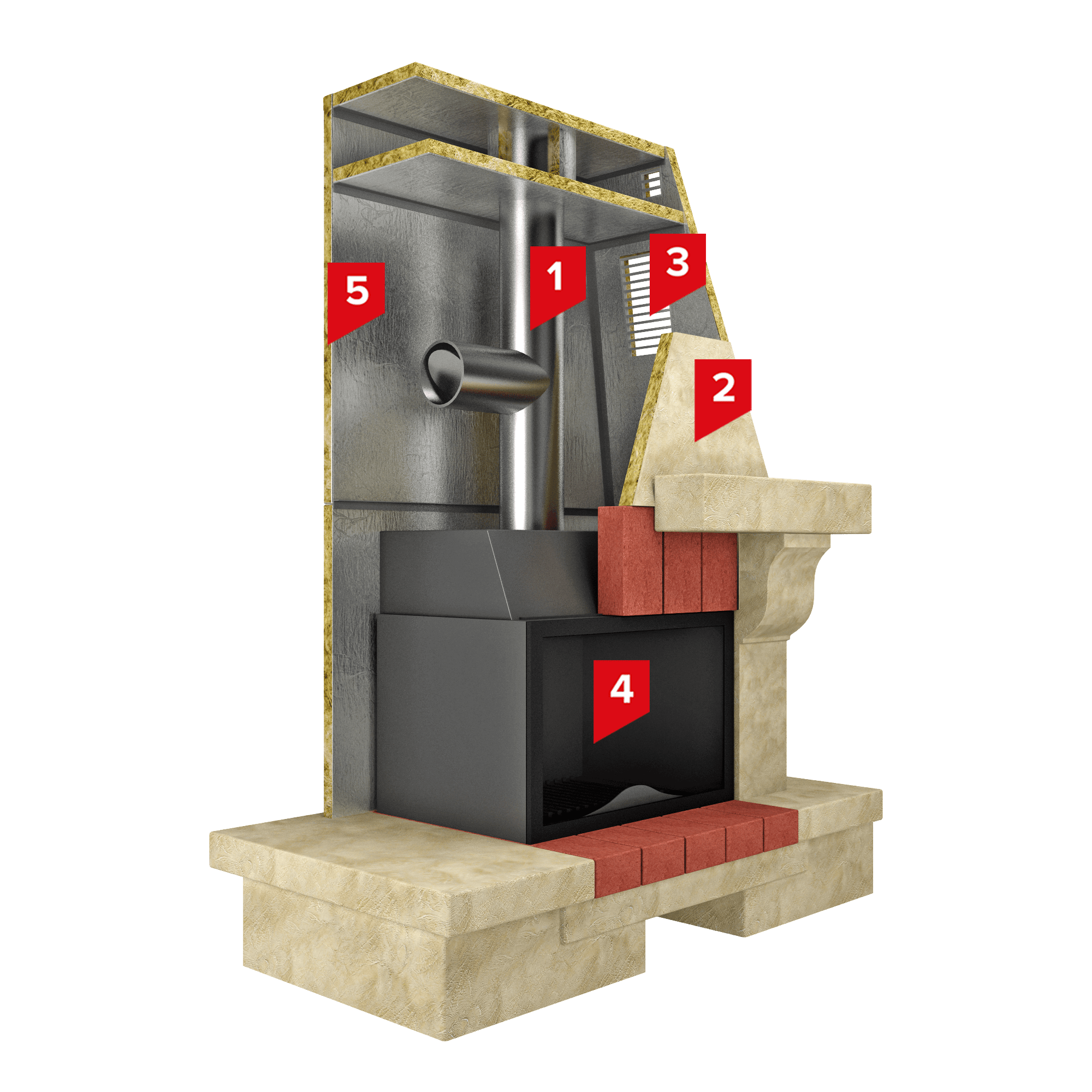 Система теплоизоляции наружных поверхностей каминов, бытовых печей и дымоходов, а также защиты конструкций, находящихся в непосредственной близости от горячих поверхностей топки камина или печи.