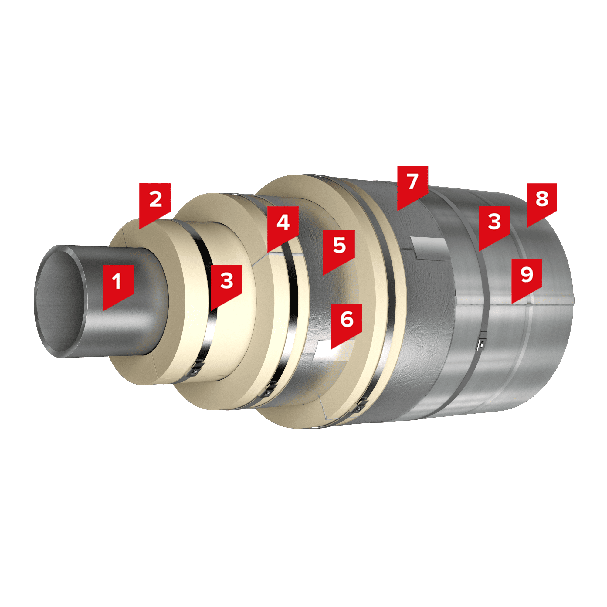 Система ТН-ТЕХИЗОЛЯЦИЯ Трубопровод PIR применяется для тепловой и криогенной изоляции газопроводов, нефтепроводов и других видов трубопроводов, надземной, подземной канальной и бесканальной прокладок с температурой применения теплоизоляционного слоя от -190 до +150 °С.
